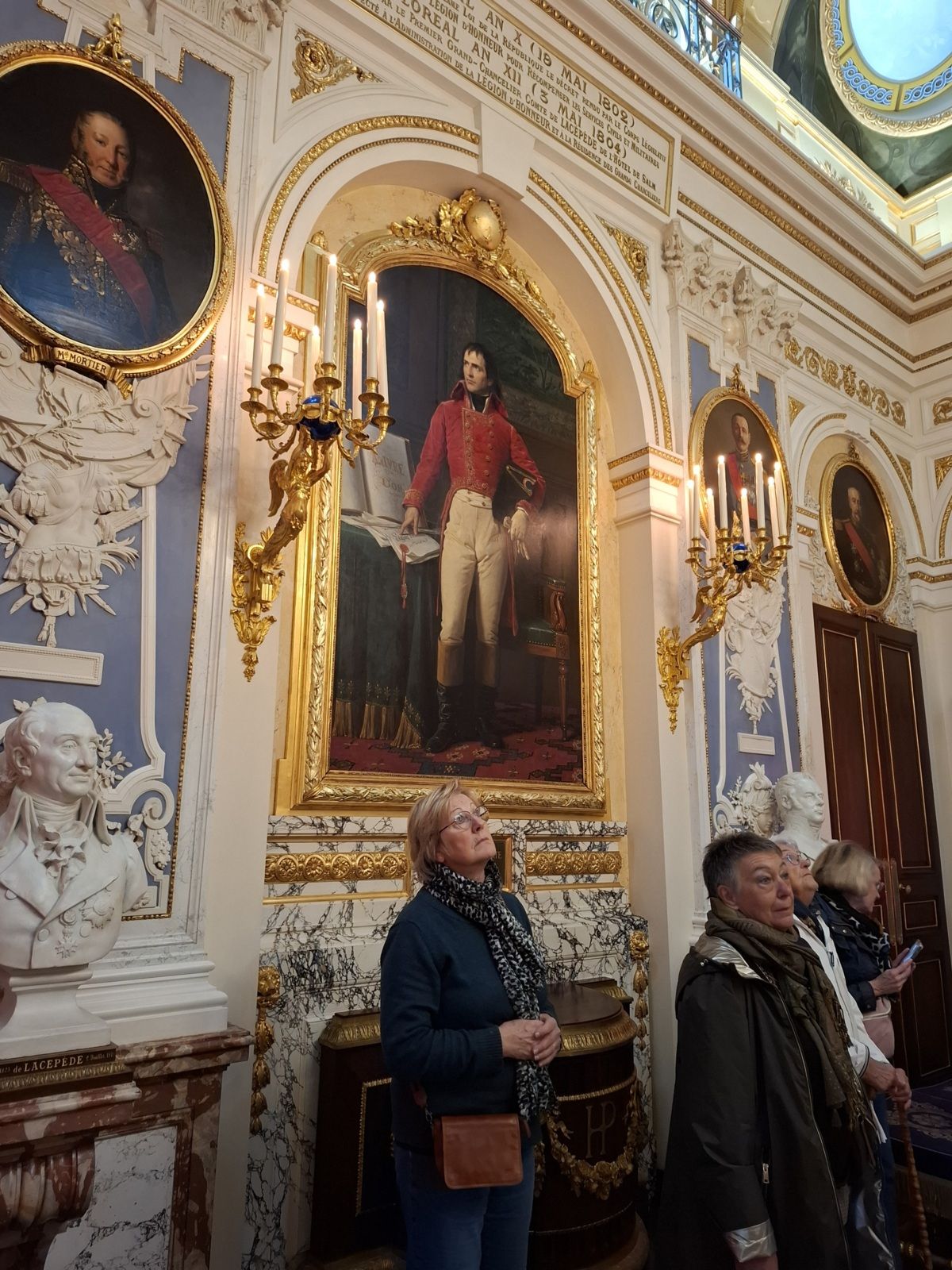 La chance fut de notre côté puisque le Grand Chancelier, à titre exceptionnel, nous a ouvert les portes de ses salons privés (ouverts au public uniquement lors des journées du patrimoine). Nous avons donc découvert les splendides salons de l’Hôtel de Salm (ou palais de la Légion d’Honneur), vaste hôtel particulier du tout début du 19° siècle, avant de parcourir les collections sous la conduite de notre conférencière, Valérie.