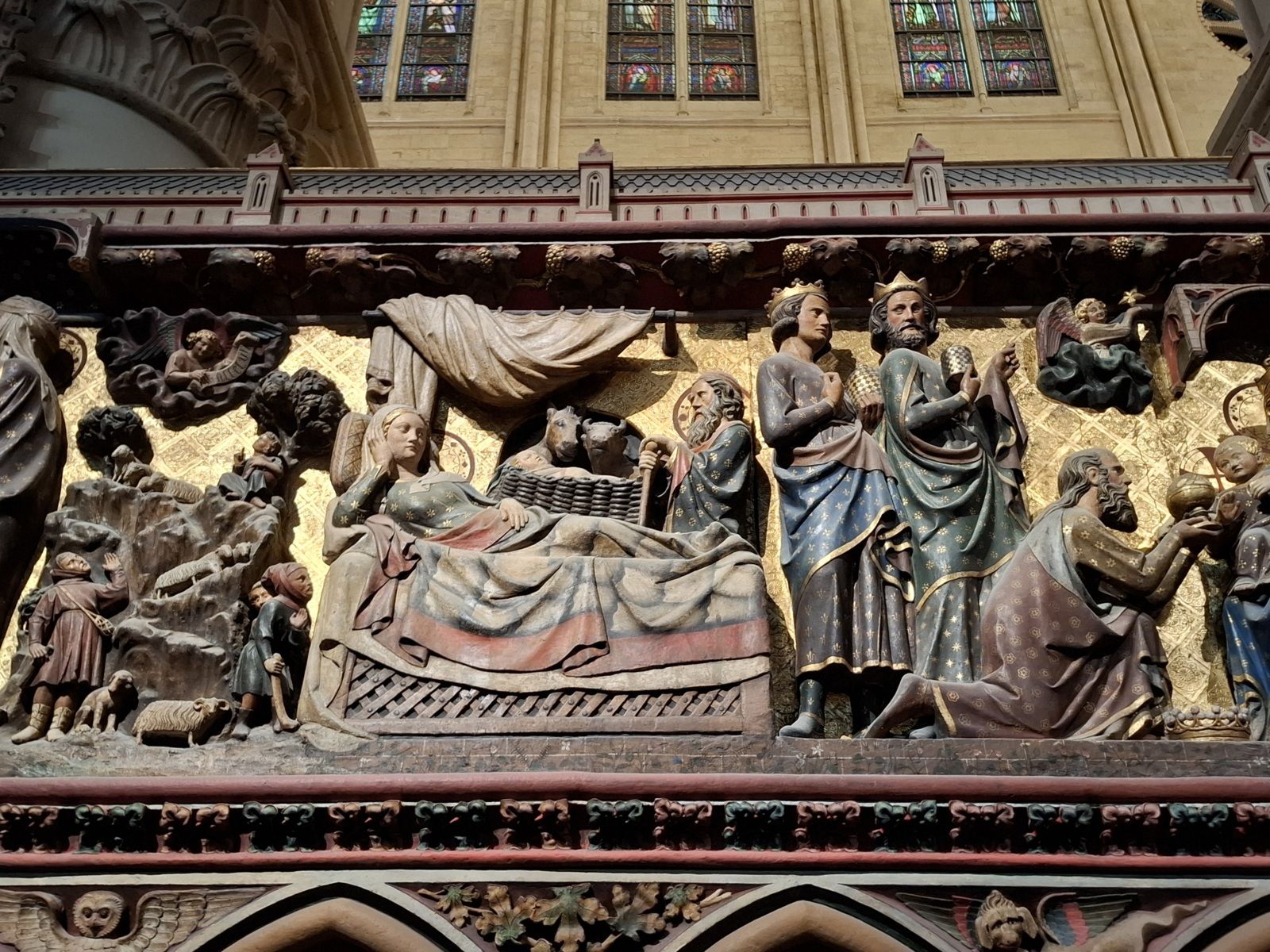 Les couleurs d’origine de la frise en ronde bosse du 14e siècle, courant tout le long du déambulatoire qui redonnent vie à cet admirable ouvrage.